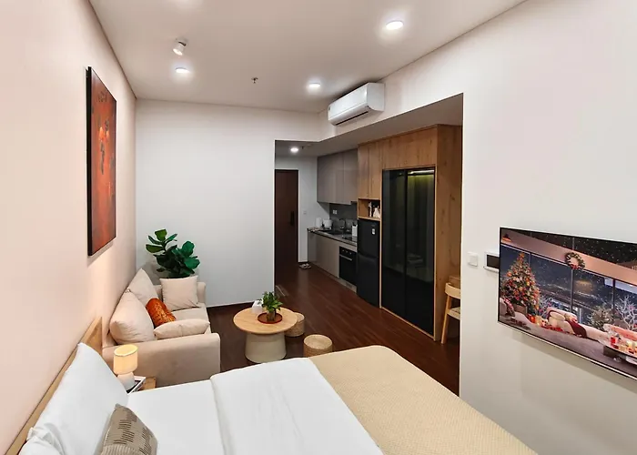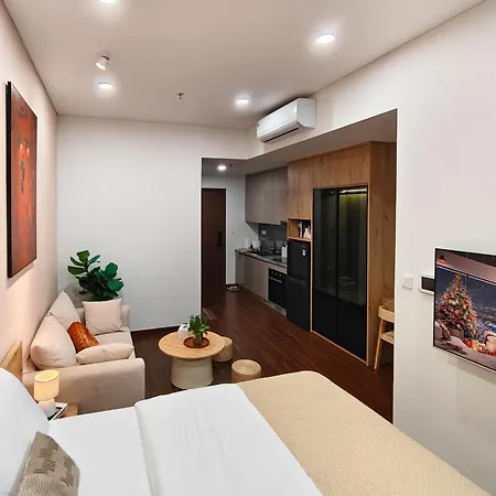 宿泊の設備の整った台所の便利さを楽しみ、自家製の食事を用意できます。 Doi dien toa Technoparkバス停留所宿泊施設から歩いて5分です。 また、リラックスできる屋上プールもあります。